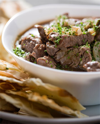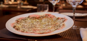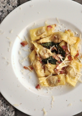 (massa recheada com carne bovina, presunto, passas e amaretto, ao molho de manteiga, sálvia e parmesão)