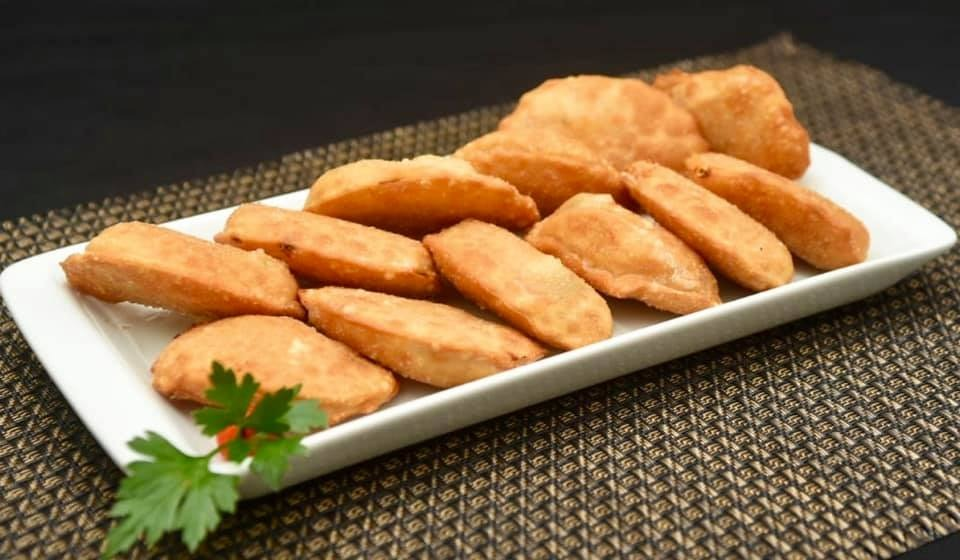 Pasteizinhos de massa recheada com queijo brie, aspargo e tomate seco;