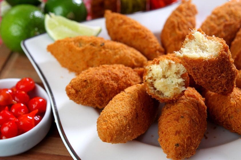 conchas de massa recheadas com creme de camarões, catupiry, creme de leite e ervas