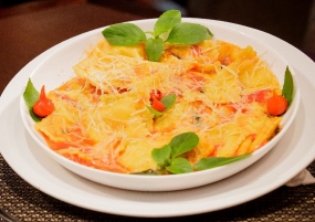 (massa recheada com muçarela de búfala, com molho de tomates à provençal)